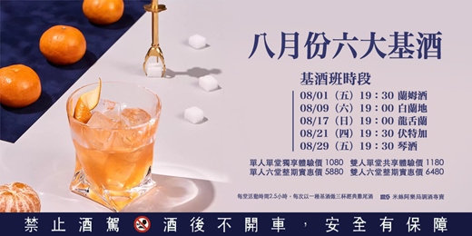 米絲阿樂局六大基酒調酒體驗,本活動將以6週為週期,分別介紹六種基酒與調酒!