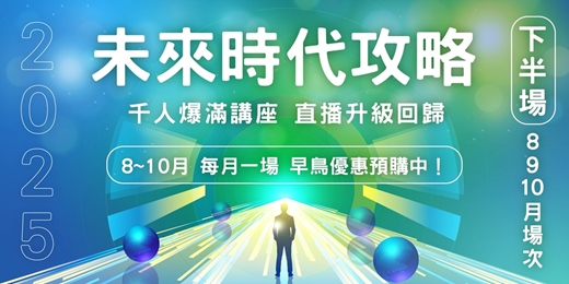 每場講座都針對未來最關鍵的議題,從AI時代的應對之道到超個人經濟學、逆轉衰老的秘術,甚至探索未來人類的全新力量。