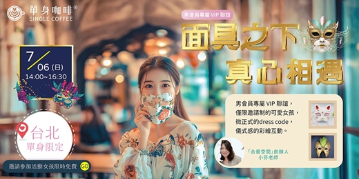 台北邀請高端交友面具彩繪聯誼派對來聯誼!NPC練愛活動中心台北聯誼派對活動 首次參加女孩 面具彩繪體驗 限時免費! 台北邀請高端交友 「面具彩繪聯誼派對」NPC練愛活動中心完美聯誼!台北邀請高端交友,您不僅能結識新朋友,還能與大家一起發揮創意,NPC練愛活動中心親手彩繪專屬於自己的面具。 台北邀請