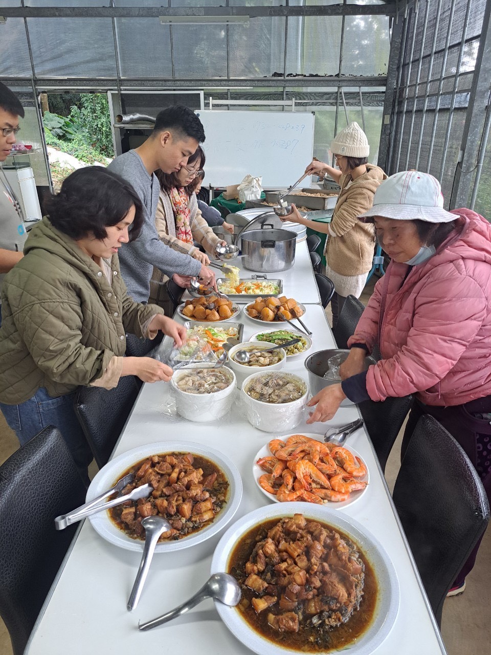 午宴以當日現採食材為主,每一道料理皆以「當季」、「當地」、「低碳」為設計核心,用最短的食物里程、最少的碳足跡,體現對環境與身體都友善的飲食哲學。呈現北投當季風味,在農園教室內以長桌桌宴共享。每一道菜餚不僅來自零里程食材,更傳遞永續飲食的價值。