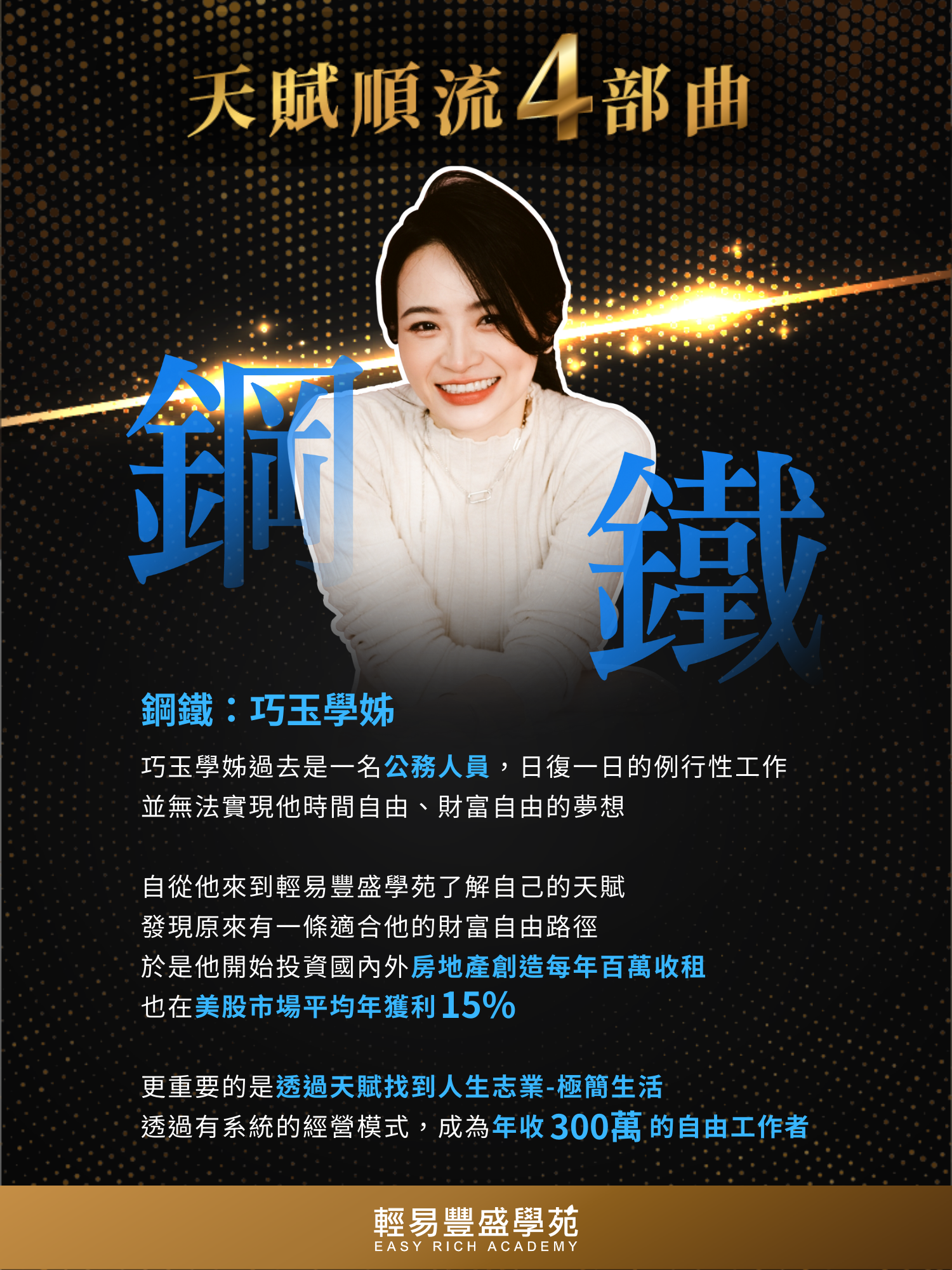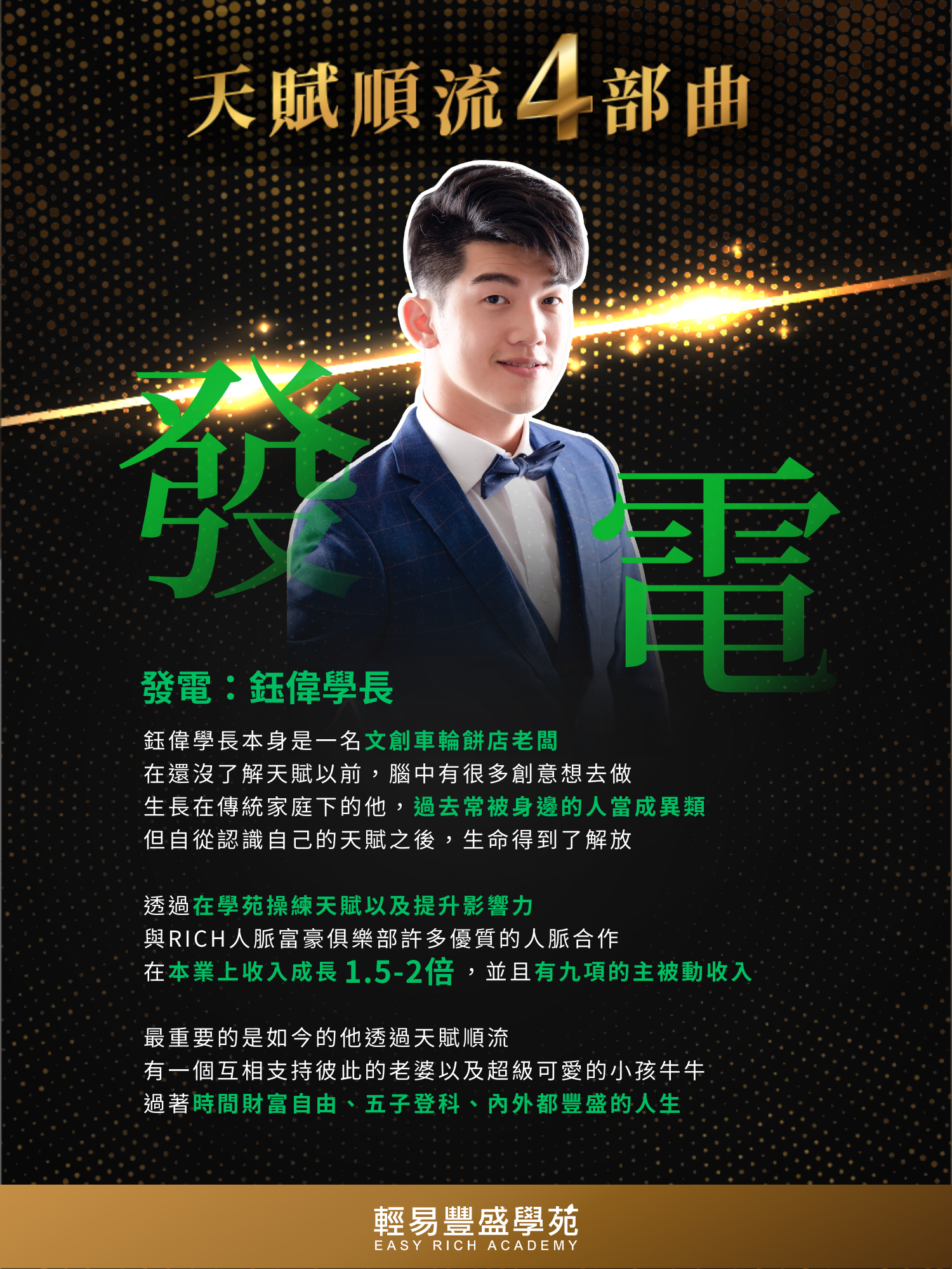 更重要的是天賦不僅僅改變我的人生也幫助我許多學員翻轉人生、順流致富!