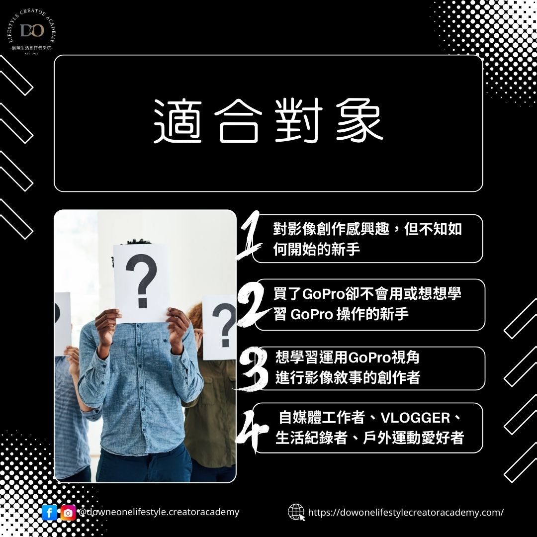 🔹 Johnny 擅長將 複雜的影像技術簡單化,帶領學員透過 實作練習+創意引導,快速掌握 GoPro 拍攝與剪輯技巧,讓你輕鬆創作出具 電影感、故事性 的影片!🎬