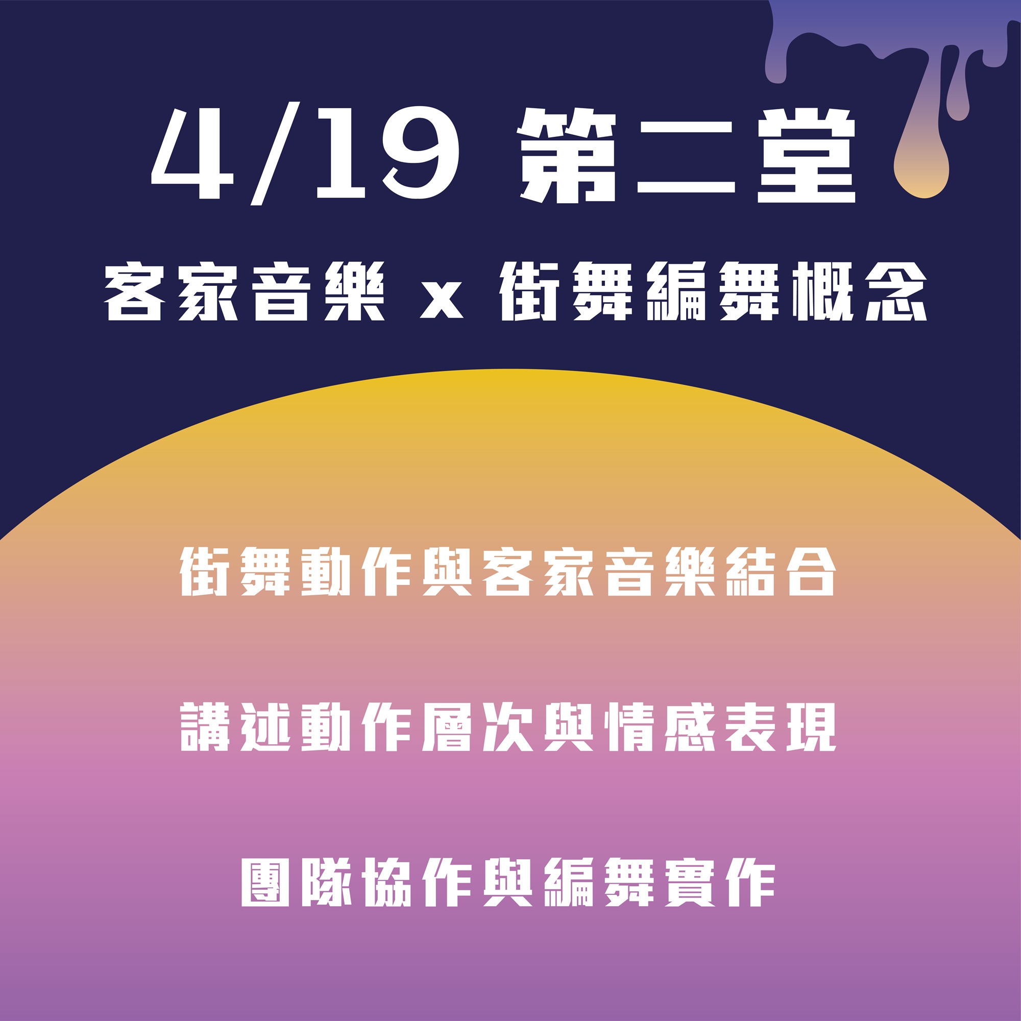 客家音樂與嘻哈街舞的精彩碰撞,由專業舞蹈教室教學授課,一起舞出新風潮!歡迎喜歡跳舞的朋友們加入我們的行列!