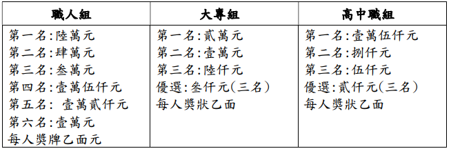 - 職人組(採三階段:初賽、複賽與決賽):