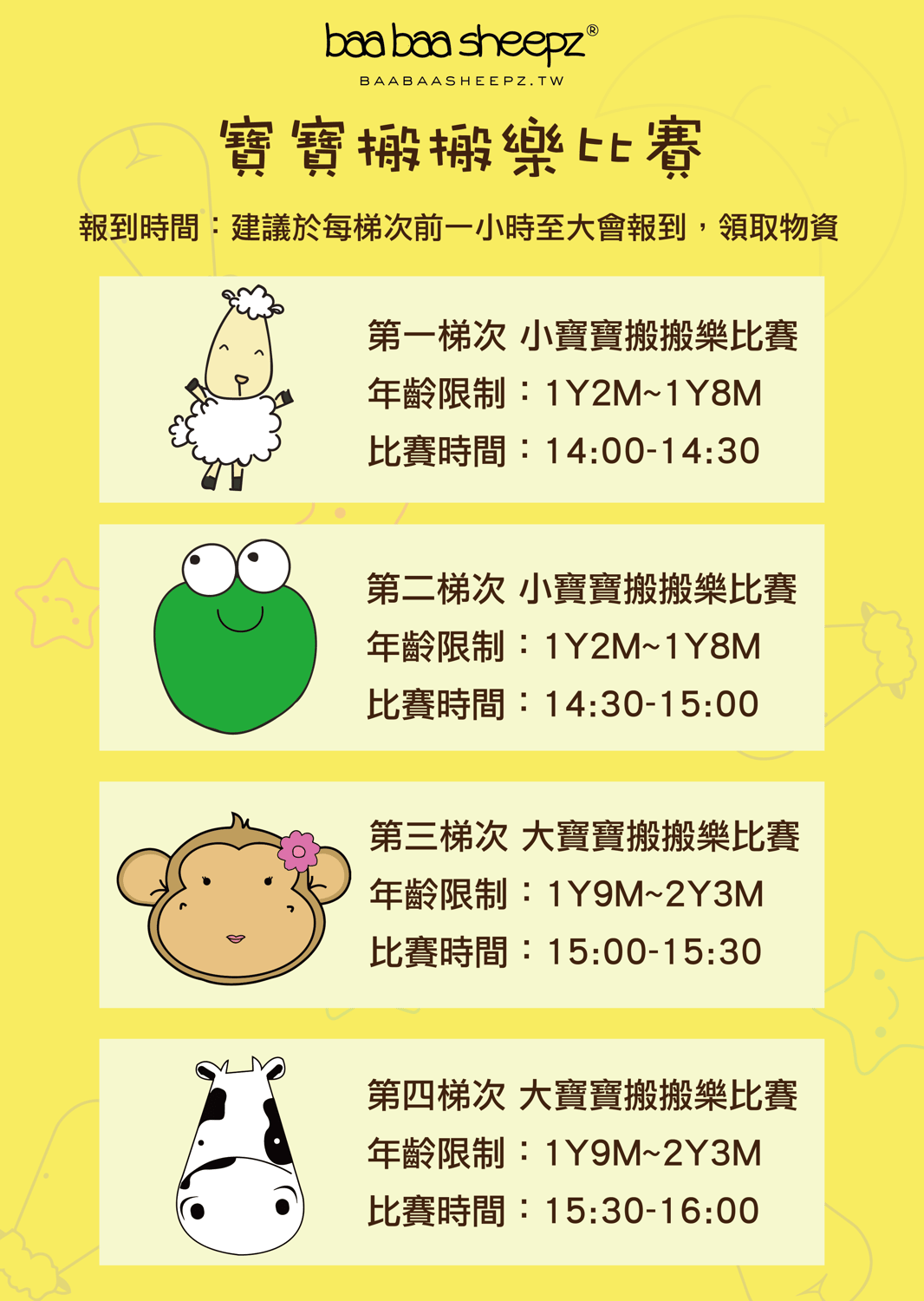 | 15:30-16:00 | 第四梯次小寶寶搬搬樂比賽 | ||