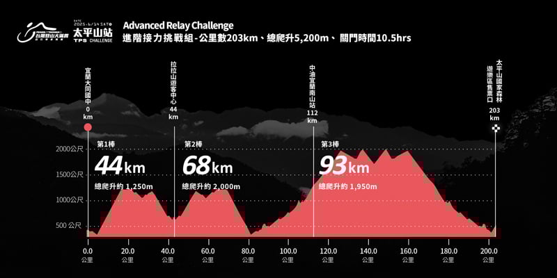 | 第二棒次 | 拉拉山遊客中心→中油宜蘭南山站(暫定) | 68KM | 約2,000M |