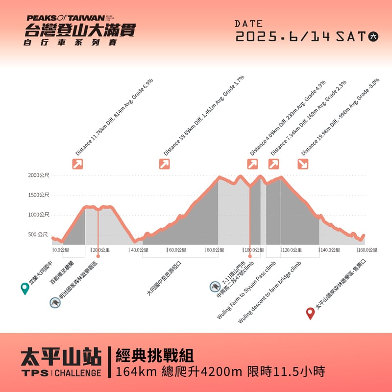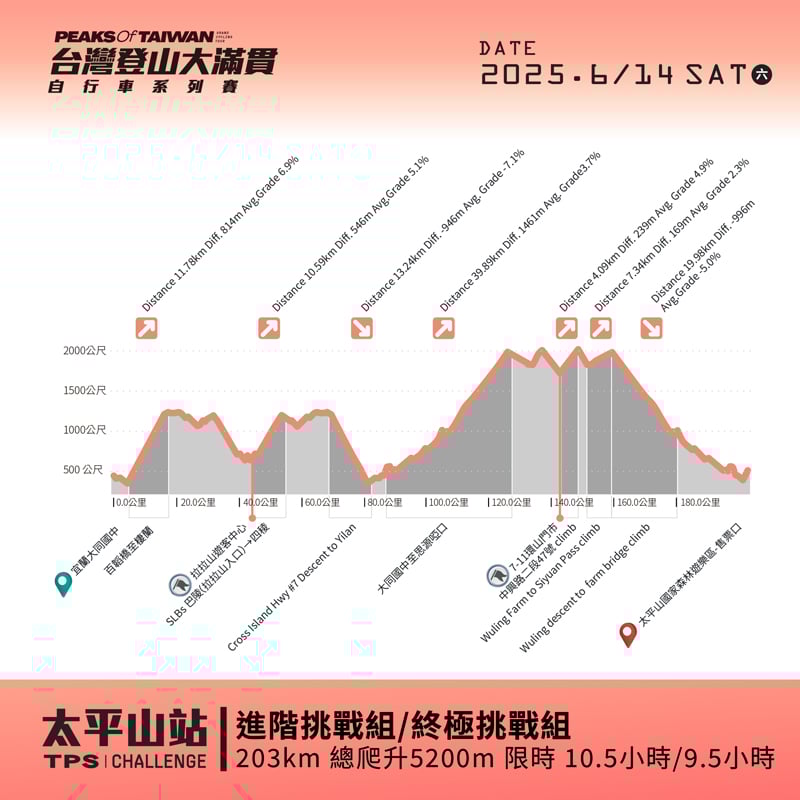 - 挑戰路線天氣多變化,易出現降雨、低溫;參賽者須注意路上騎乘與抵達終點之保暖準備。