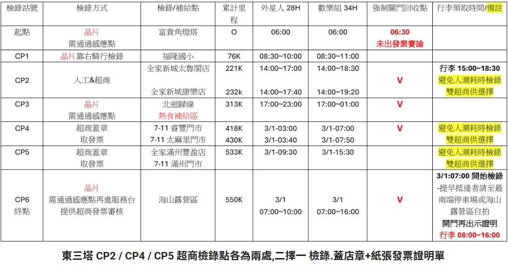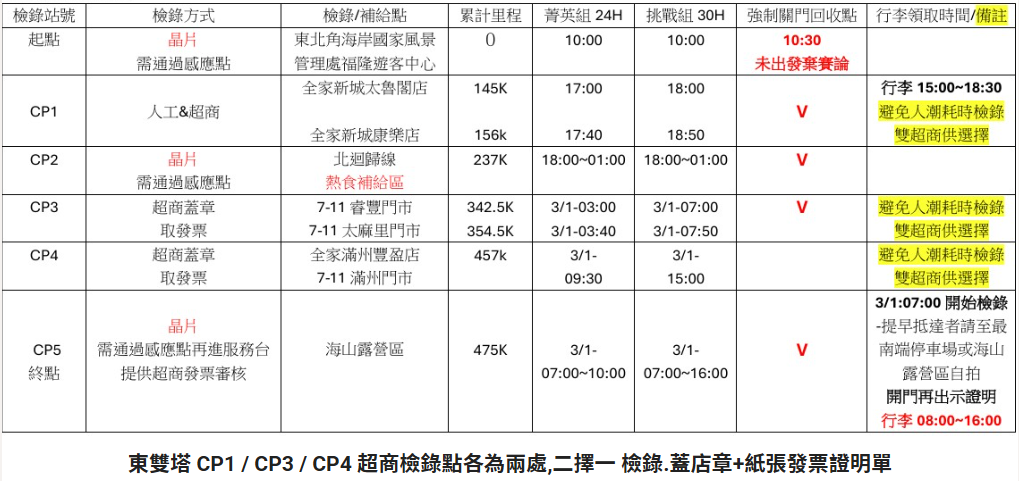| 終點關門時間 | 3/1-10:00 | 3/1-16:00 | 3/1-10:00 | 3/1-16:00 |
